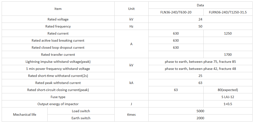 İki türe ayrılabilir: FLN □ -24kv (K tipi tek yaylı çalışma mekanizması), FLRN □ -24kV (tip çift yaylı çalışma mekanizması). İkinci tip, özellikle halka ana ünitesi, kablo dağıtım kutusu ve anahtarlama trafo merkezi için uygun olan bir koruma ve kontrol cihazı olarak güç kaynağı ve trafo merkezi için kullanılabilen kontrol ve koruma fonksiyonuna sahip sigorta kombinasyonu ile donatılabilir.