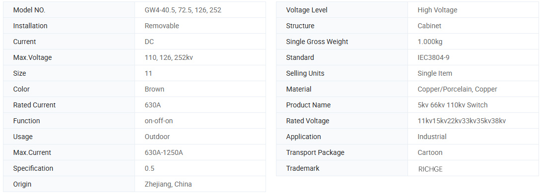GW4-12(40.5) dış mekan AC yüksek gerilim bağlantı kesme anahtarı (kısa devre kesme anahtarı), gerilimli ancak yüksüz 50/60Hz, 12(40.5)kV güç sistemi ile devreyi açmak ve kapatmak için kullanılır. IEC129-1984 AC Ayırma Anahtarı ve Topraklama Anahtarı ve GB1985 standartlarına ve diğer ilgili standartlara uygundur.