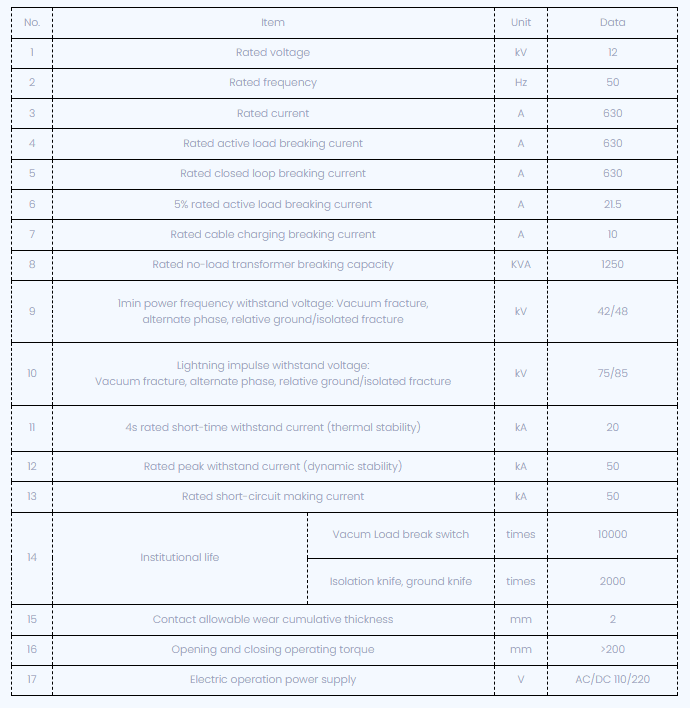 Bu ürün kompakt yapı, küçük hacim, uzun ömür, güçlü kapanış ve kırılma kapasitesi ve kolay çalışma ve bakım vardır. Vakum anahtarı, bir elektrik motoru (başka bir manuel) yay enerjisi depolama alanını benimseyen ve iki tür kapanış yöntemi vardır: elektromanyet kapanma ve manuel bölme ve kapanma. Yanlış ameliyatı önlemek için bağlantıyı kesme anahtarı, vakum anahtarı ve topraklama anahtarı birbirleriyle (mekanik birbirine taşıma) kilitlenir.