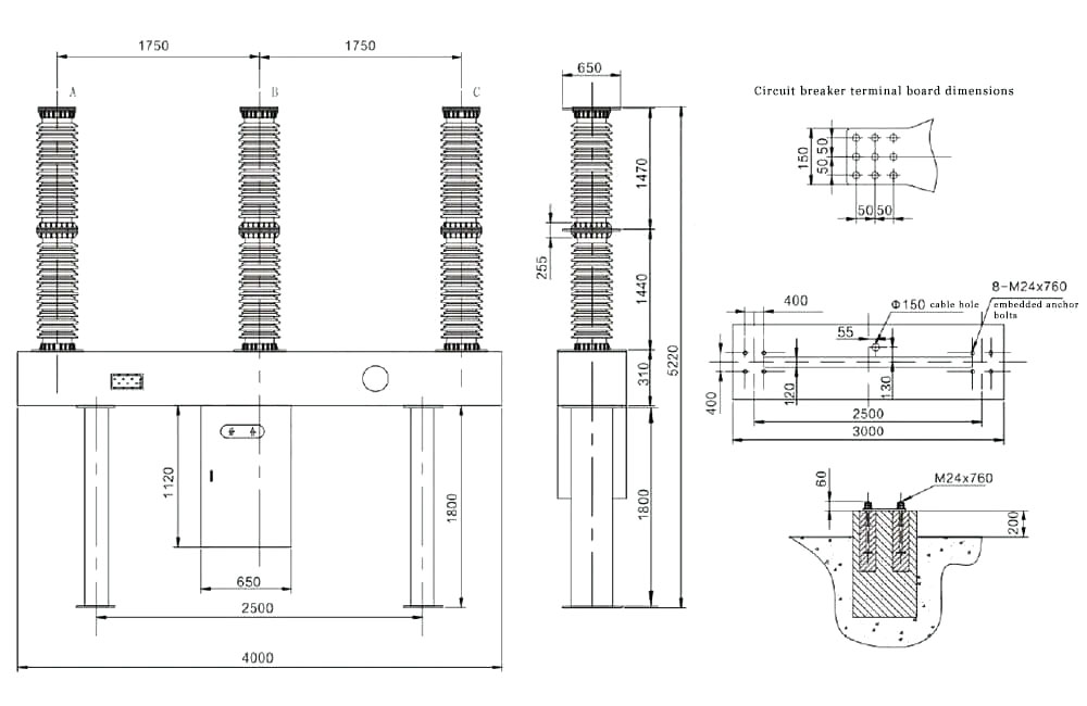 Devre kesici, üç fazlı bir porselen sütun tek kırılma yapısını benimser. Üç aşama, merkezi olarak düzenlenmiş ve üç fazlı çalıştırılan bir yay çalışma mekanizması ile donatılmıştır, bu nedenle görünüm yeni ve zariftir. Devre kesici, yalıtım ve ark söndürme ortamı olarak SF6 gazını kullanır. Çalışma sırasında, devre kesicinin üç kutuplu SF6 gazı bağlanır ve basınç ve yoğunluk ilerlemesini izlemek için bir işaretçi tipi yoğunluk rölesi kullanılır. Kendinden enerji ark söndürme prensibi ve devre kesici hareket sistemindeki optimize edilmiş tasarım nedeniyle, mekanik verimlilik etkili bir şekilde geliştirilir ve çalışma çalışması en aza indirilir;