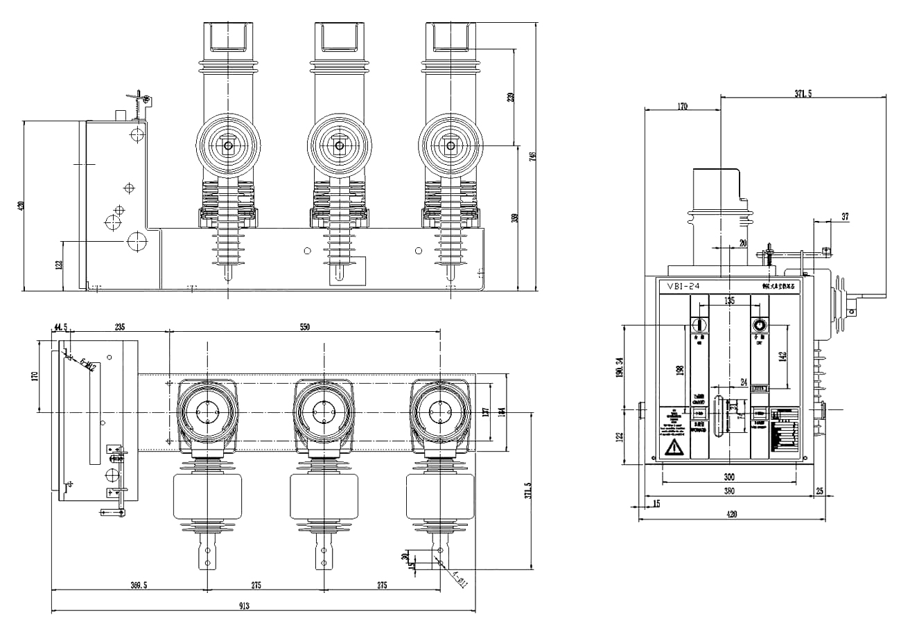VBI-24kV Yan Montajlı Yalıtım Silindiri 3 Fazlı Vakum Devre Kesici