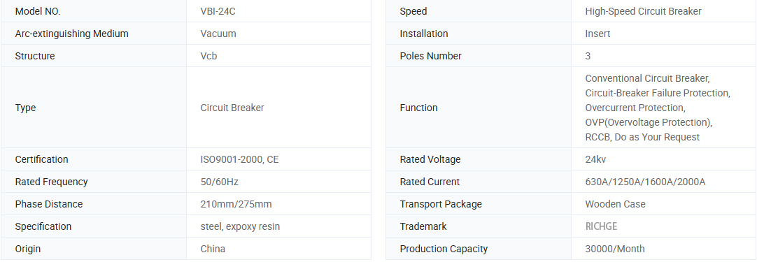 VBI-24 orta voltajlı vakum devre kesici, İsviçre'deki ABB Corporation'ın teknolojisini birleştiren ve Çin'de gelişen 50Hz/60Hz üç fazlı AC 24kV nominal voltajlı bir tür kapalı orta voltaj anahtarı ekipmanıdır. Ürün standart GB1984 ve IEC62271-100 ile uyumludur.