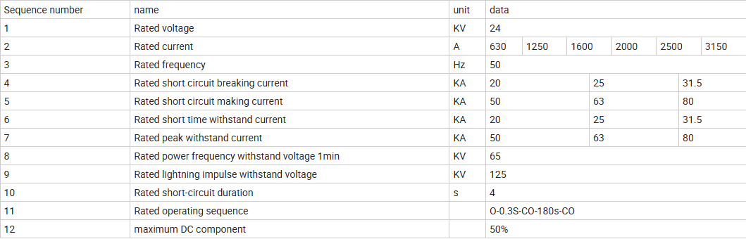 Bu tip vakum devre kesicinin yay mekanizmasına sahip ana iletken devresi, yalıtım, mekanik ve kırılma performansı güvenilirliğini büyük ölçüde artırabilen ve serbest bakım ve daha uzun mekanik ve elektrik ömrünü gerçekten gerçekleştirebilen gömülü direktir. Bu tip vakum devre kesici ulusal standartlara ve IEC standardının şartlarına uygundur. Yetenek M-E2-C2 derecesine ulaşır.