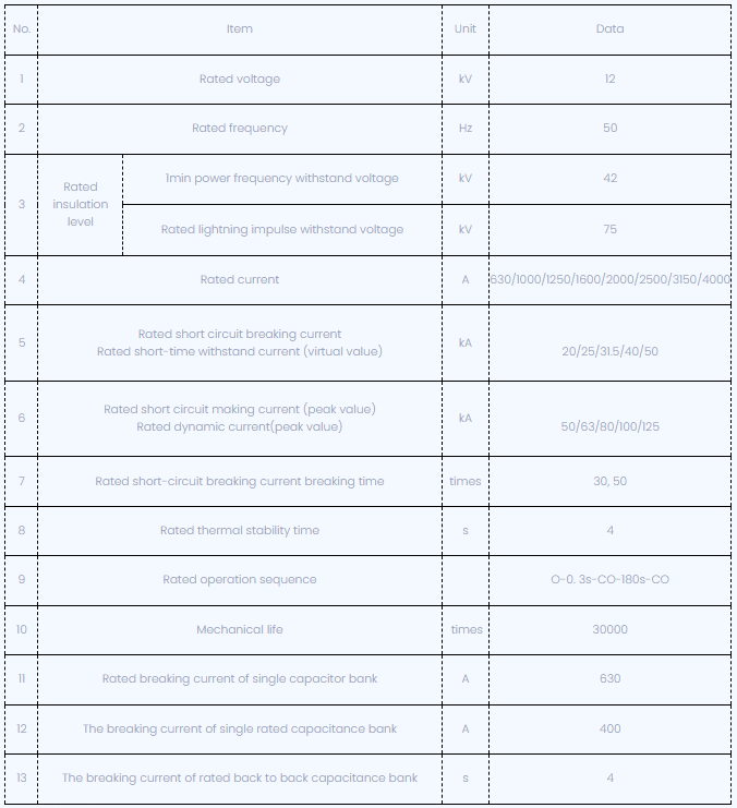VSG-12 Handcart Tipi Vakum Devre Kesici Teknik Parametre