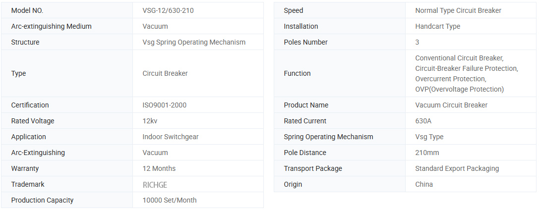VSG-12 kapalı yüksek voltajlı vakum devre kesici (abbr.: Devre kesici) üç ifade A.C. Bu ürün GB1984-2003 (yüksek voltajlı A.C. devre kesici), JB3855-1996 (3.6-4.5kV iç A.C. Yüksek voltaj devre kesici), DL403-2000), DL403-2000), 12-40.5kV yüksek voltajlı volge volge (2001) siparişi için teknik koşullar) ve IEC Standart 627100 (IEC Standart 627100 (2001. kesici). Izgara ekipmanındaki ekipmanı korumak ve kontrol etmek için kullanılabilir ve endüstriyel ve madencilik işletmesinin dinamik tasarımı. Farklı mülklerle yük ve sık çalışma ve kısa devre akımını kırma işlemlerinin kapasitesiyle uygundur.
