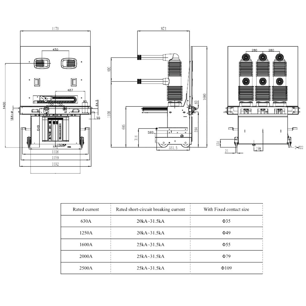VSG-40.5kV Yüksek Voltajlı Çekilebilir Kapalı Zemine Montajlı Devre Kesici